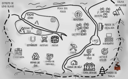 Além de saber lutar com a espada, você precisa saber atacar à distância. Para isso, temos a Linha de Tiro, um espaço cheio de alvos onde você frequentemente encontrará caçadoras ou filhos de Apolo, além de outros exímios arqueiros do acampamento.